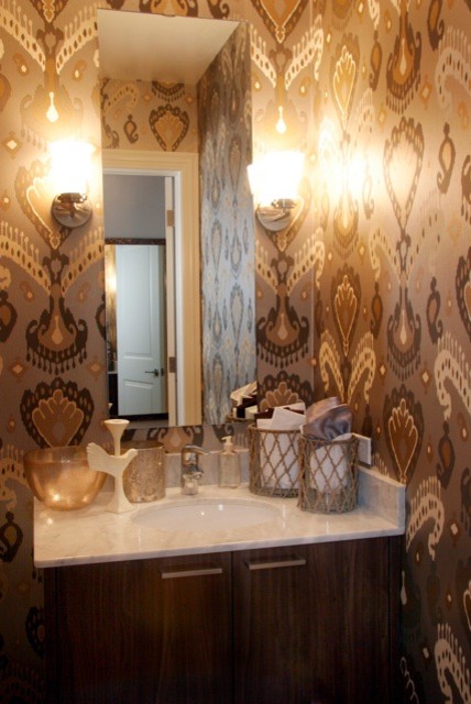 These space are small, and people don't spend much time in them, so it feels safe to choose patterns and colors that you might not for main living areas. The powder room, united states.