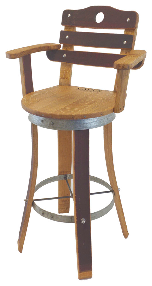 Wine Barrel Bar Stools. Collection by allen esh • last updated 6 weeks ago. Refurbished oak wine barrels are transformed into rustic stools that add are sturdy, stylish and truly unique. The wine barrel parts are crafted out of oak wood and the stool has elements made out of wrought iron and has a polished, shiny finish. Enjoy free shipping and discounts on select orders.